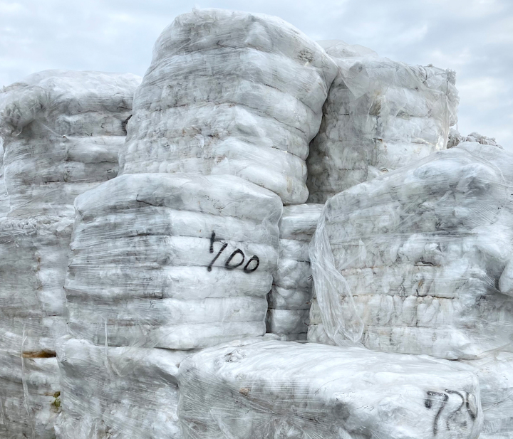使用済みストレッチフィルムの回収・再生原料化(ペレット)・製織(生地)まで、全ての工程を国内で完結。