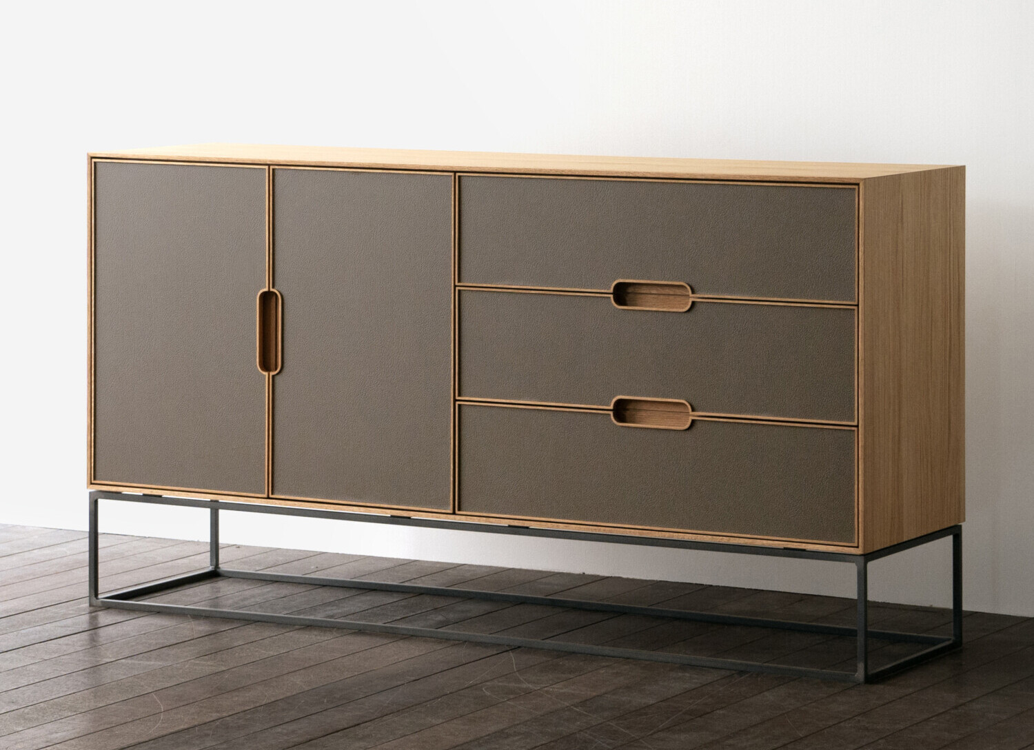 端材などを活用しその見た目を生かしたラスティックな製品は数多ある中で、端材を使いサステナブルかつ上質さを演出するインテリア素材も必要なのではと感じ、上質感を感じさせる象徴的な素材である「革」の端材再利用技術に着目し、企画・開発に着手しました。